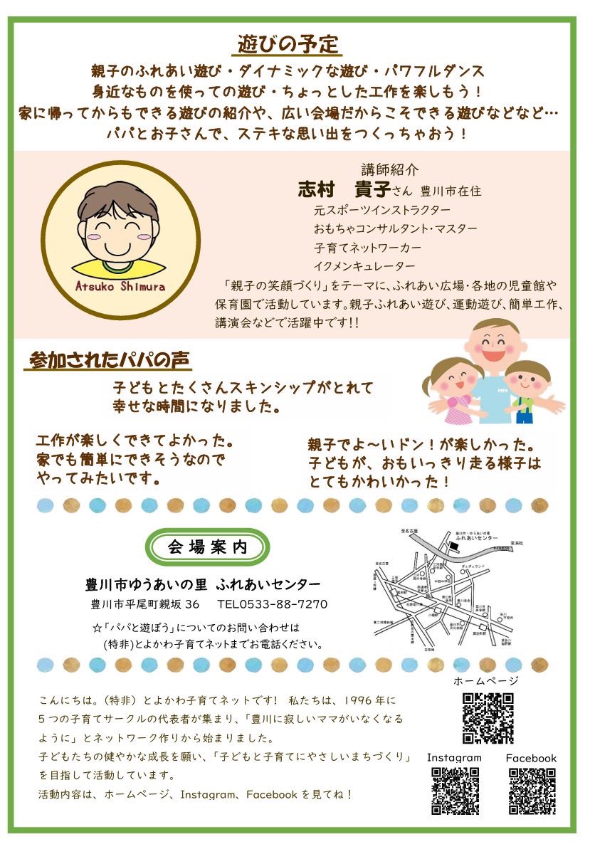 子育て大好き「イクメン」パパも、子どもと遊ぶのはちょっぴる苦手というパパもみんな集まれ!みんなで遊ぼう!