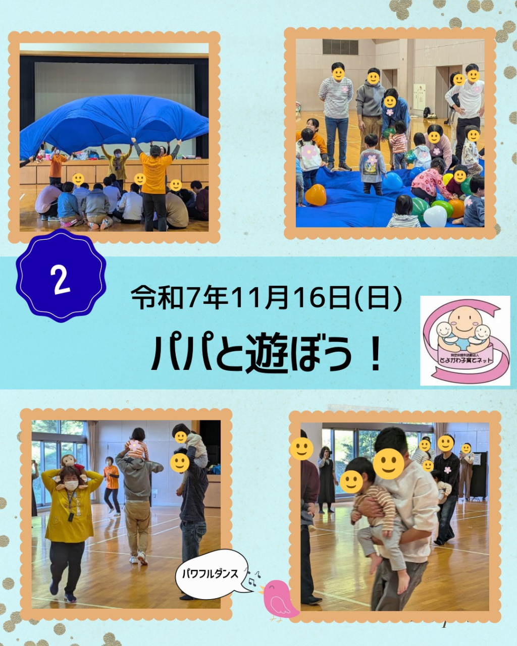 パパとお子さんのえがお溢れる姿を見て、スタッフもいっしょに楽しい時間を過ごすことができました。