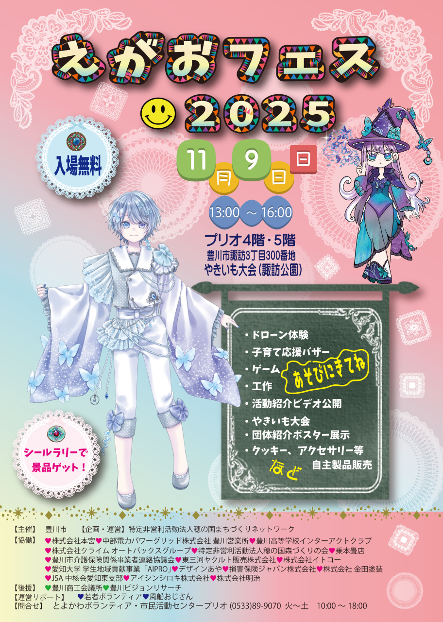 「えがおフェス2025」にてとよかわ子育てネットは、「子育て応援バザー」として参加しました。