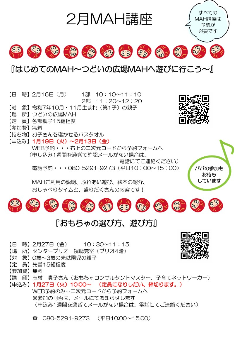 つどいの広場「MAH」 1月号MAHだより掲載中!