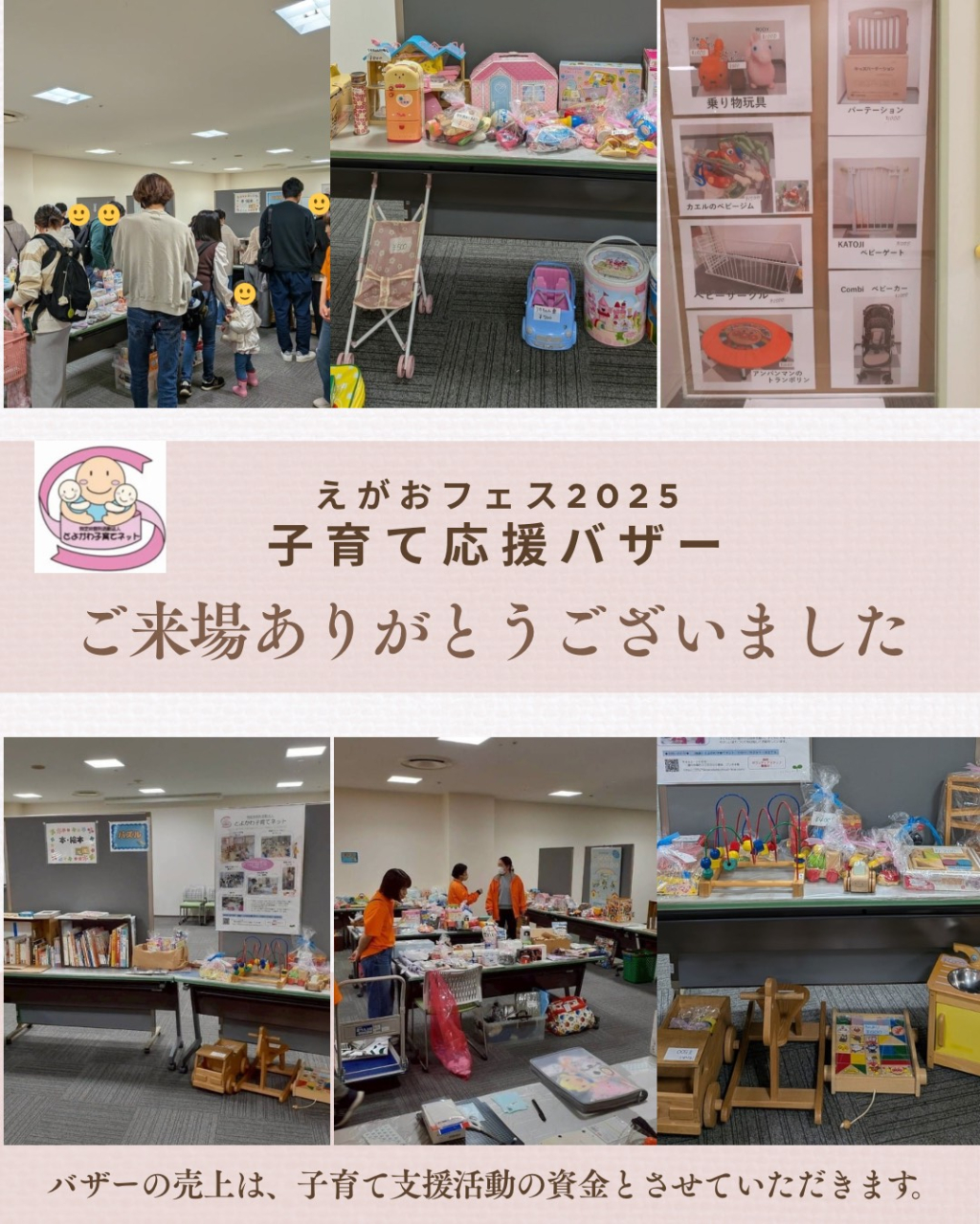 「えがおフェス2025」にてとよかわ子育てネットは、「子育て応援バザー」として参加しました。